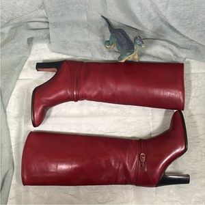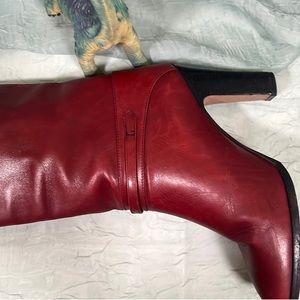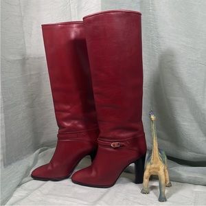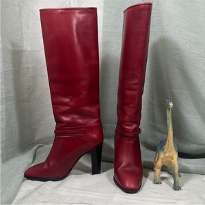 RARE Vintage Di Fabrizio Vero Cuoio Red Leather Knee High Boots with 3 inch Heel