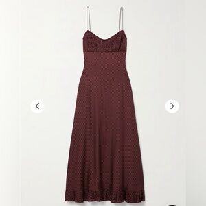 NWT! Doen Rosaria gathered polka-dot silk-blend midi dress - L