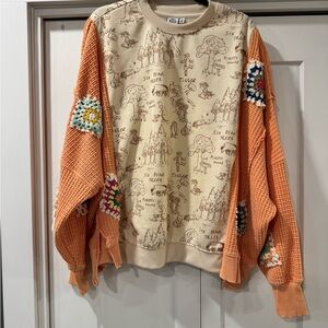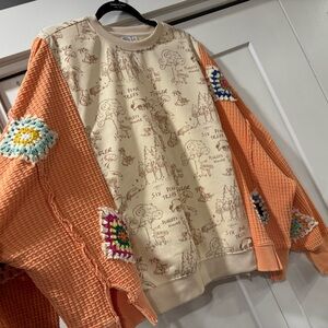 Upcycled Pooh Granny Crochet Cardigan with Colorful Patches