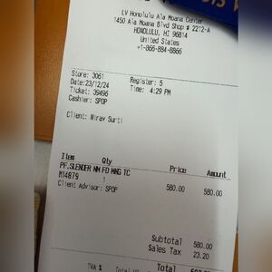 Comes with box, dust bag, and shopping bag.
