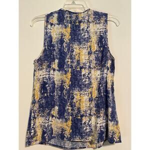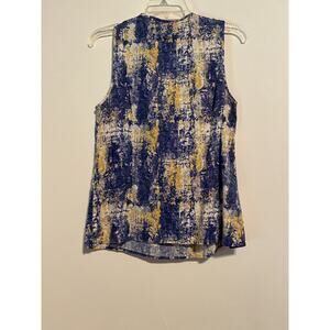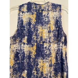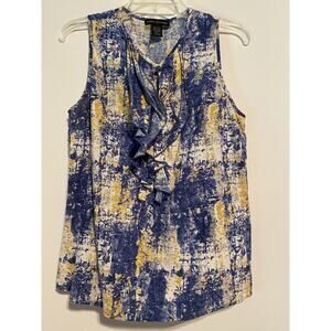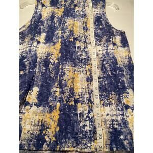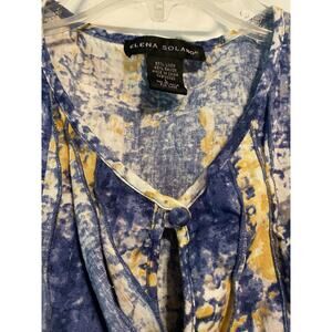 Elena Solano Sleeveless Linen Rayon Large Blouse Ruffle Front Blue Yellow
