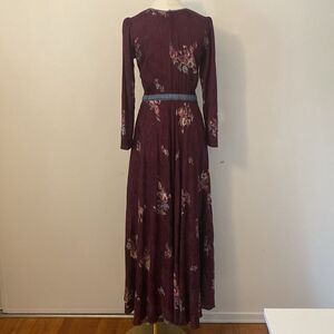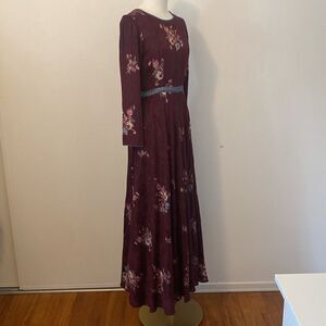 Vintage Purple Floral Long Sleeve Maxi Dress Size Small