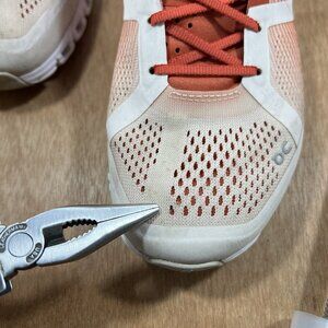 Stylish On Running shoes. Red and white design. Perfect for athletic activities.