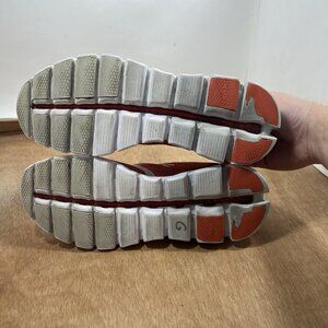 On Running Red and White Athletic Shoes