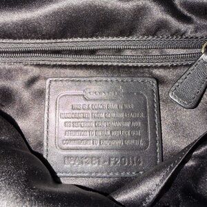 Sophisticated dark gray leather bag by Coach. Features sleek design and quality craftsmanship.