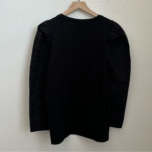 Chico's Women’s Black Cotton Embroidered Puff Sleeve Sweatshirt Size M