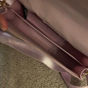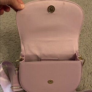 Features a structured shape with a flap closure and adjustable crossbody strap.
