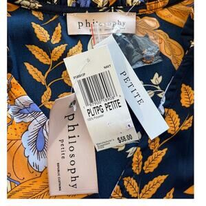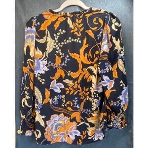 Philosophy Womens PL Navy Floral Pullover V-neck Ruffle details Sleeves Office