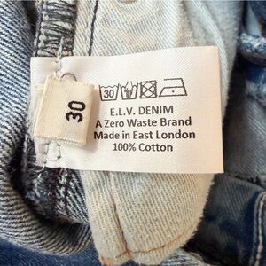 These Contrast Straight Leg Jeans by E.L.V. Denim are a straight leg jean with a slim fit crafted in two different tones of upcycled denim with an asymmetrical hem. - Sourced and color matched by hand in London. - Slim, straight cut. - Each pair is unique, crafted from upcycled jeans of contrasting color. - Zip closure. Size 30 • Waist: 15.5” • Hips: 18.5” • Rise: 13” • Inseam: 29” **Approx - flat lay EUC. 📌 Since each pair is unique and handmade, stock images are included for reference only.