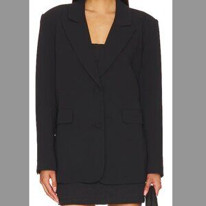 Oversized blazer with a relaxed, roomy fit. Black. Size 3 (Large) . Like new condition. Machine wash, tumble dry. Material: 66% polyester, 28% viscose, 6% elastane. Two button front closure. Flap pockets.