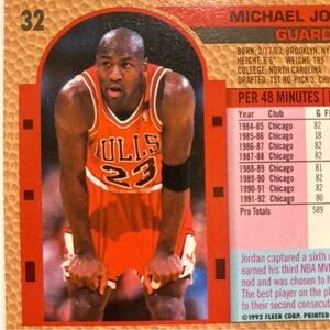 Vintage Fleer '92-'93 basketball card #32 featuring Michael Jordan.