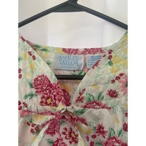 Ashley Taylor Intimates Womens Floral Robe Midi Length Short Sleeve Medium