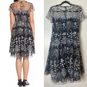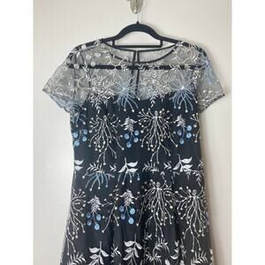ADRIANNA PAPELL DRESS FAIRY COCKTAIL PARTY WHIMSIGOTH BLACK FLORAL EMBROIDERED