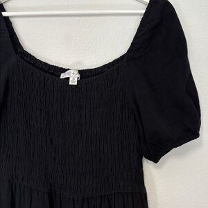 She + Sky Black Maxi Dress Tiered Medium Puff Sleeve