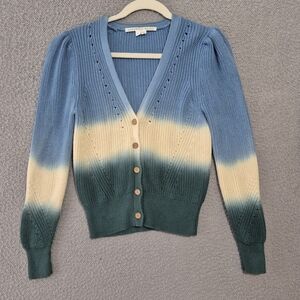 Veronica Beard Women's Blue Green Parula Tie Dye Ombre Puff Sleeve Cardigan S