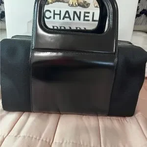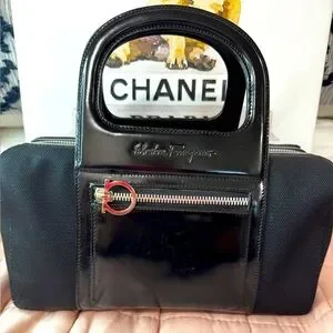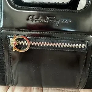 Vintage Salvatore Ferragamo Black Nylon & Patent Leather Mini Bag