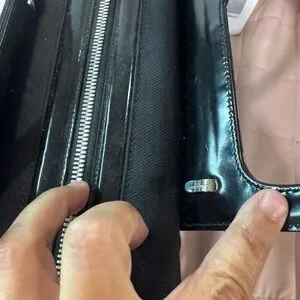 • Black nylon body with glossy patent leather trim
