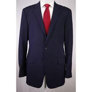 Hickey Freeman Navy Blue Subtle Windowpane 2-Btn Wool Suit Milburn 44L