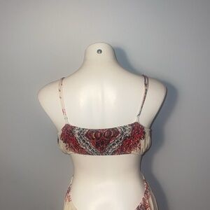 Free People Bella Floral Printed Jumpsuit Cutout Size Medium. 100% Rayon. Adjustable shoulder straps. Elastic waistband. Inseam is 18 inches.