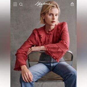 Sezane NELE SHIRT in Rosewood Women's Ruffled Lace Blouse