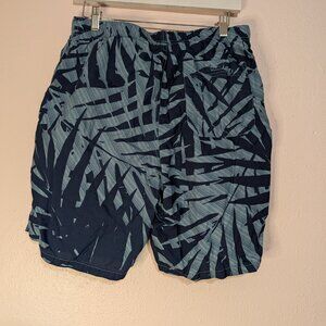 Columbia Men's Swim Shorts Blue Navy Palm Print Hidden Pocket Size Medium
