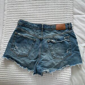 In good, used condition. Some minor staining from washing on the back leather tab.