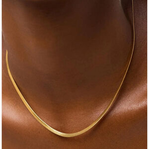 “Our most-loved herringbone chain necklace now in a longer length! Plated in 14k gold, this timeless necklace features 17" of elegance and a perfectly polished finish. Designed to be a goes-with-everything piece, this herringbone chain can be dressed up or down for wherever the day takes you. Layer this chain with our Pebble necklace for a classic look that you can wear everyday.”