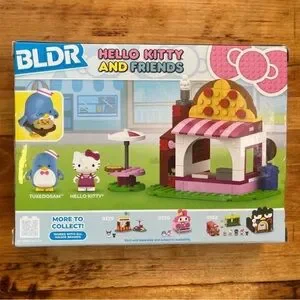 Create your dream pizza parlor with the exclusive Tuxedosam's Pizza Parlor Building Set! This delightful 122-piece set features 1.5-inch poseable minifigures that bring Friday nights to life as you join Tuxedosam taking orders and Hello Kitty crafting delicious pepperoni pizzas. Enjoy your tasty creations at the charming picnic table under a cozy umbrella, perfect for keeping the sun at bay. With authentic Hello Kitty and Friends details and a comprehensive illustrated instruction manual, building your pizza paradise has never been more fun. BLDR bricks are compatible with all major construction brands so that you can build and expand your world of Hello Kitty and Friends. Don't miss out on the excitement-grab your set today and let the pizza party begin!