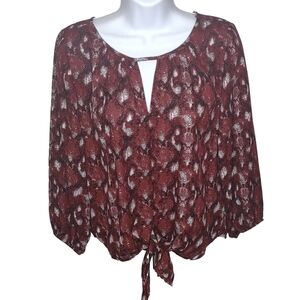 Effortlessly Chic: West Kei Long Sleeve Lightweight Keyhole Front Tie Blouse, Size XS
