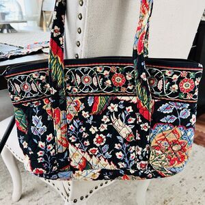 Vera Bradly Retired "Versailles" Floral Quilted Tote Bag with Umbrella Cover