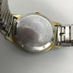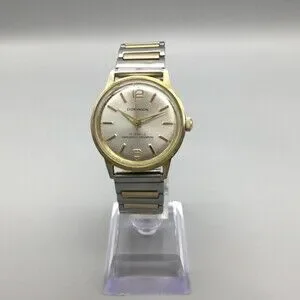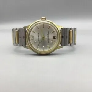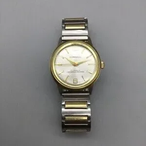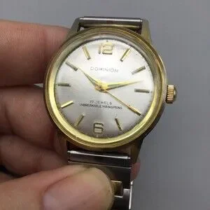 Vintage Dominion Mens Watch 34mm Silver Dial Manual 17 Jewels Two Tone Bracelet