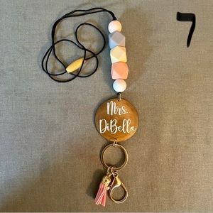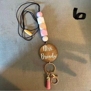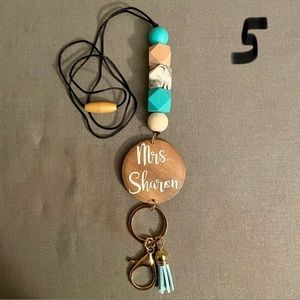 Beaded lanyards with customized name on a wooden disc. They have a breakaway end that is great if you work with individuals who pull on it, meaning you don’t get strangled. There are 10 designs available. The disc is only about 2” wide. If you would like a design on both sides of the disc please let me know, otherwise let me know the name to add. Also, a clear ID badge holder can be included upon request.