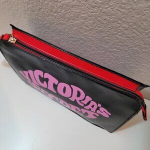 Playful Victoria’s Secret wristlet featuring bold graphic text on both sides. Sleek flat silhouette with a red wrist strap and zip-top closure, perfect for carrying essentials day or night.