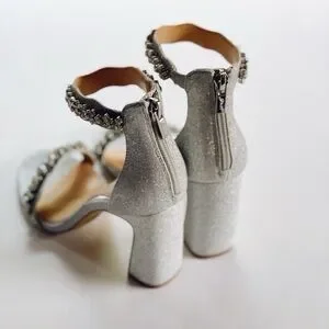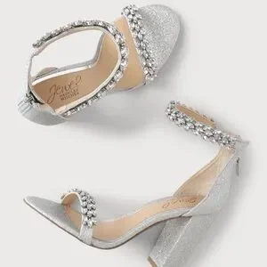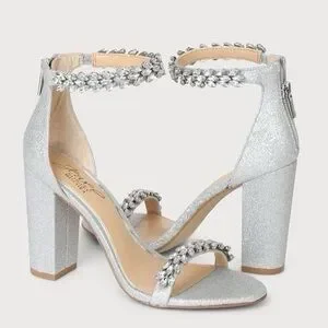 Badgley Mischka Mayra Silver Glitter Rhinestone Ankle Strap Heels