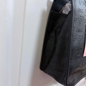 Chic black tote with embossed Juicy Couture design. Features elegant silver-tone logo detail.