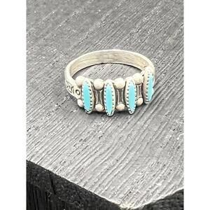 Vintage Bell Trading Hallmarked Sterling Silver Turquoise Petit Point Ring 5.5