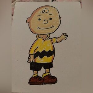 Charming cartoon character art with a yellow shirt and black zigzag pattern. Perfect for fans and collectors.