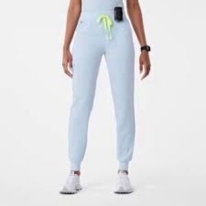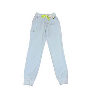 NWT women’s FIGS Zamora Blue with Neon WAIST TIE Jogger Scrub Pants SZ XS
