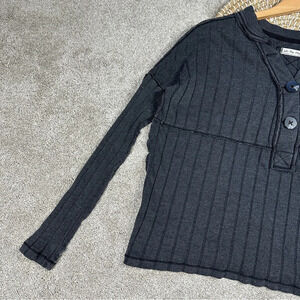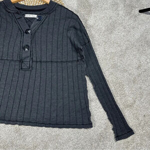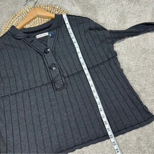 We The Free In The Mix Ribbed Oversized Long Sleeve Henley Top Charcoal Gray XS