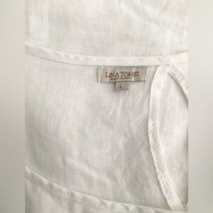 COLD SHOULDER LINEN TOP. KEYHOLE OPENING IN THE BACK. 100% LINEN. SIZE L. EXCELLENT CONDITION.