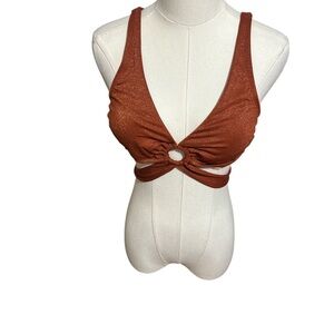New CUPSHE Bronze Shimmer Bikini Set Ring Detail Tie Back Medium