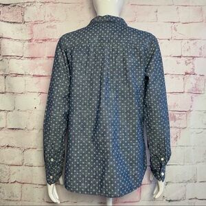 J. Crew Denim Blue with White Circle Design Button Uo Long Sleeve Shirt. Two Front Chest Pockets.