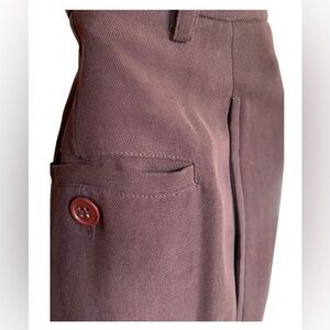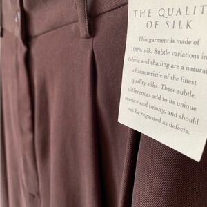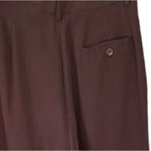 TROUSERS PANTS Vintage Hugo Buscati 100% Silk Twill Pleated Chocolate Brown NWT