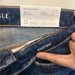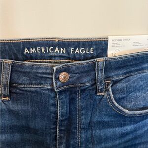 American Eagle Outfitters Next Level High-Waisted Distressed Jegging-Size 12 Dark Indigo, new with tags!