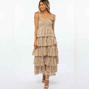 NWT Crescent Floral Tiered Dress in Beige and Yellow