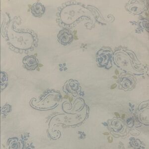 Charming paisley design. Soft white and blue hues. Perfect condition. No stains. Fitted, flat and pillowcase.