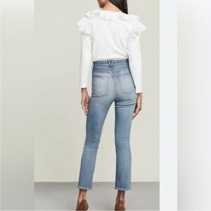 The Carly features a high-rise silhouette that is fitted through the hips and thighs with a skinny flare leg. The highest quality stretch denim gives these jeans the most flattering fit with a quick recovery.