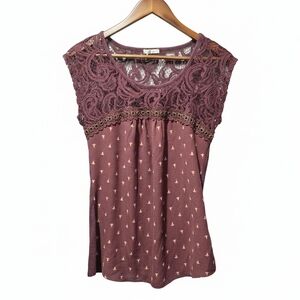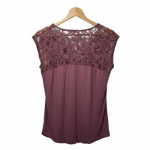 Maurices Lace Accent Blouse - Burgundy Plum Floral Casual Office Size Small