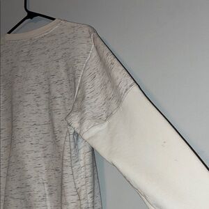 Classic Adidas crewneck with a white heather and white design. Features bold logo on the front. Perfect for casual wear.