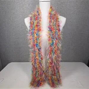 MULTICOLOR FUZZY 64" × 4" SCARF – RAINBOW FEATHERY TEXTURE STATEMENT ACCESSORY – CLEAN